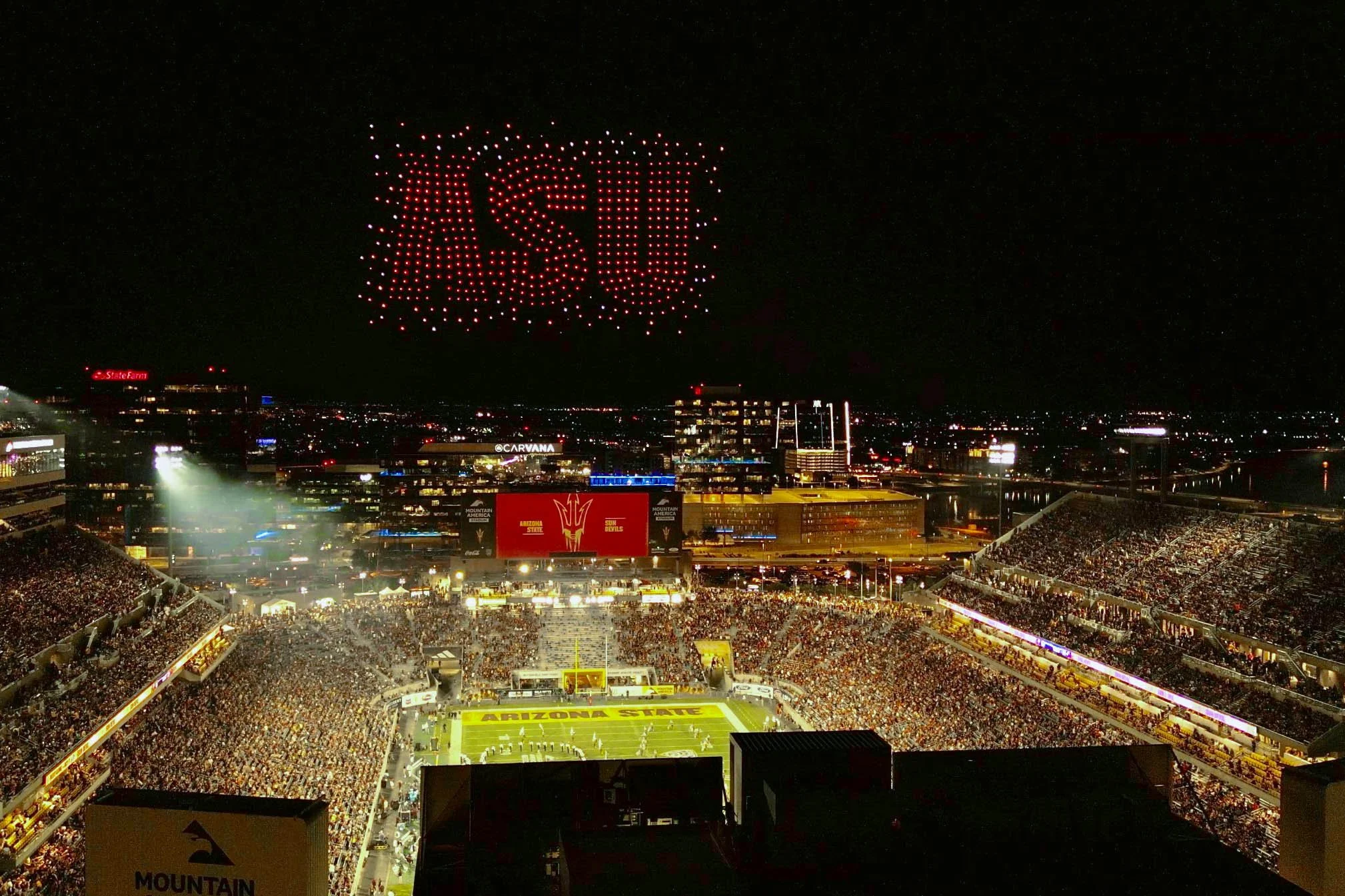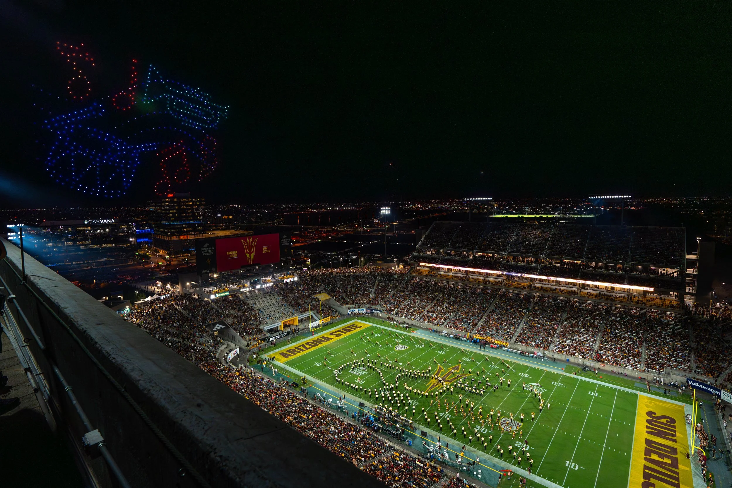7 Minute, 600 Drone show for 53,000 fans at Mountain America Stadium.